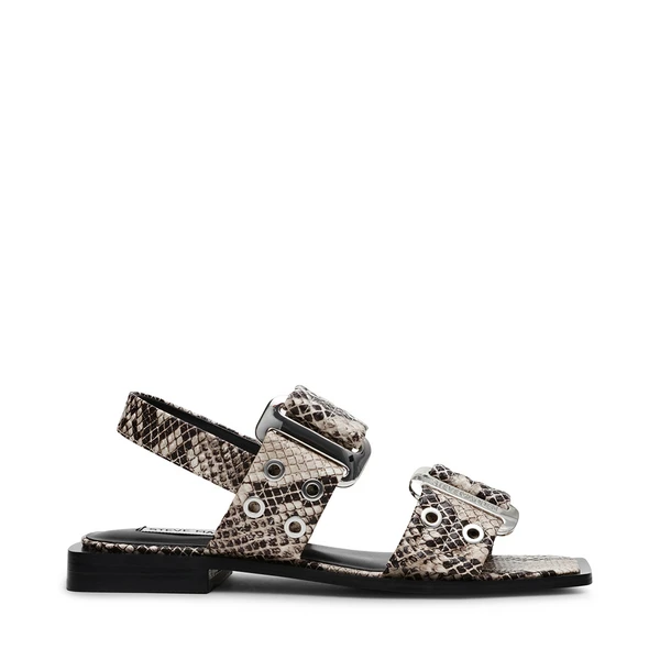 The Saria slingback flat have a super angular silhouette with a square back and a snipped toe. Chunky grommets and oversized buckles give an edge to the wide straps over the top and the toe of this design.